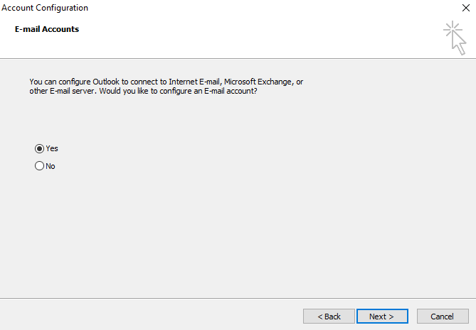 2. selanjutnya akan muncul jendela account configuration, Pilih Yes untuk melanjutkan