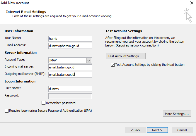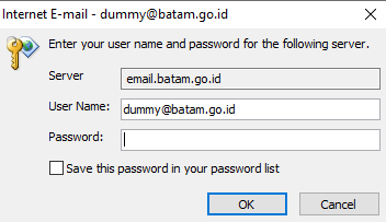 8. lalu akan diminta untuk memasukan username dan password, masukan username dan password email, selanjutnya pilih OK