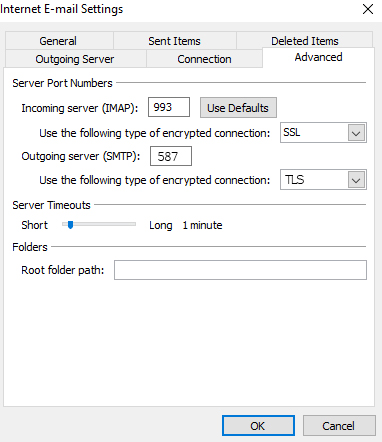 6. pada jendela More Settings.., pilih tab Advanced, kemudian atur :